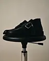Ørkenstøvlen er i sort læder, men har fået et stort sølvspænde på, der gør den ellers lidt tilbageholdende sko mere flashy.